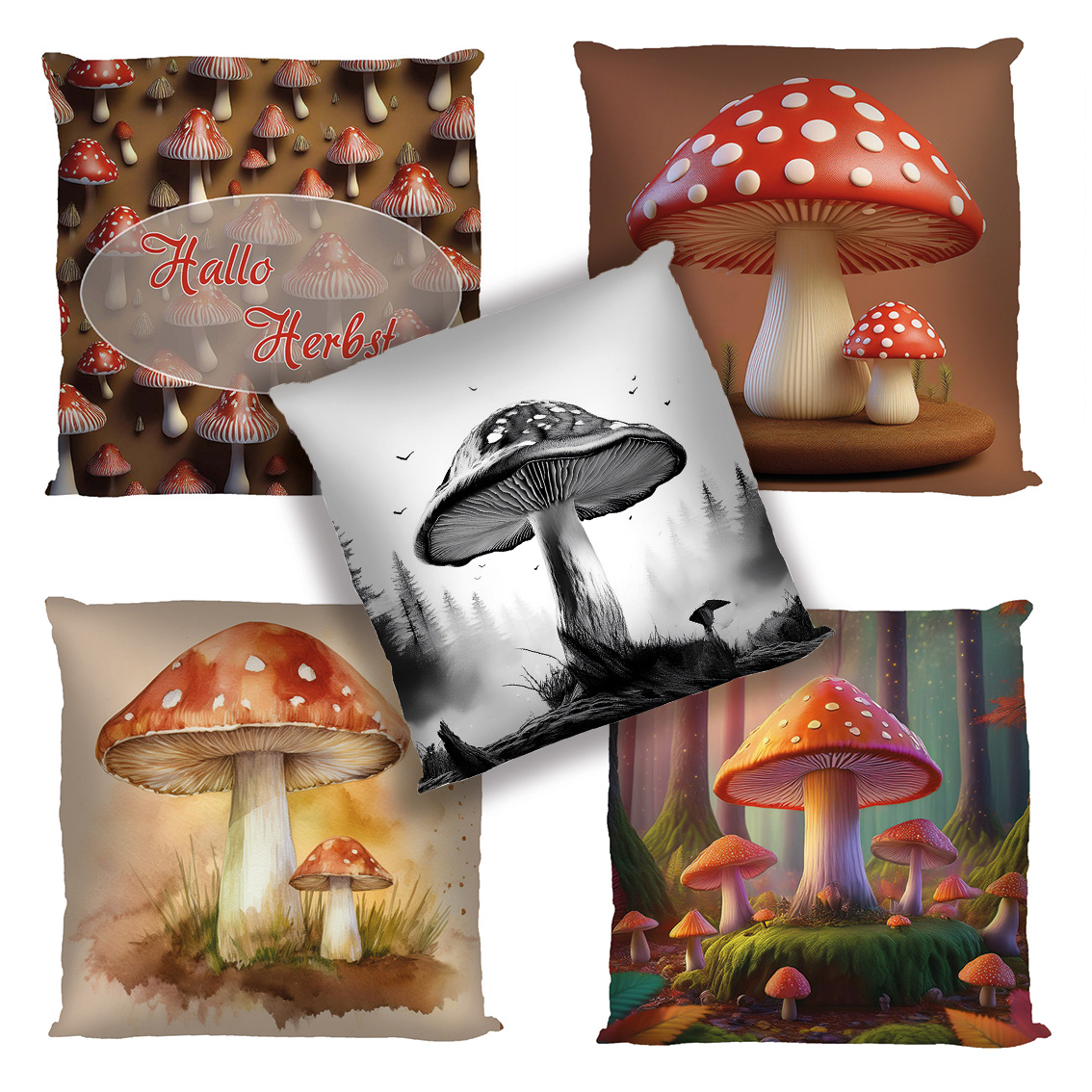 Diese dekorativen Kissenbezüge mit herbstlichen Fliegenpilz-Motiven sorgen für Gemütlichkeit in Ihrem Wohnzimmer, in der Sitzecke oder im Kinderzimmer. Schaffen Sie eine stimmungsvolle Atmosphäre mit diesen Kissenhüllen in warmen Farben. Wir bieten Ihnen ästhetische Designs in verschiedenen Stilrichtungen an, die sich teilweise auch kombinieren lassen.